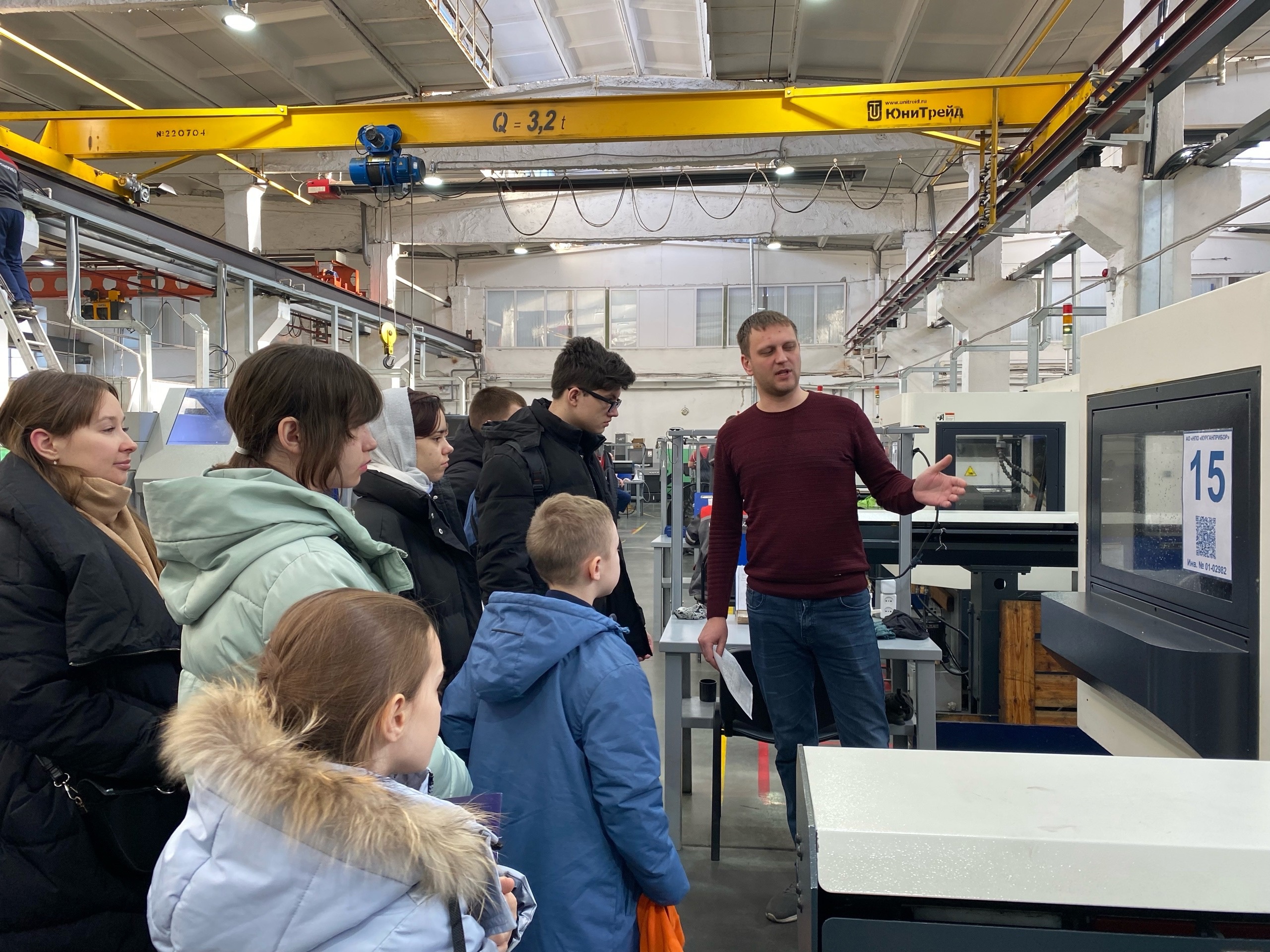 Заместитель начальника механического цеха Михаил Кожевников показал ребятам обновленные, современные станки с ЧПУ, на которых изготавливают детали для военной техники.