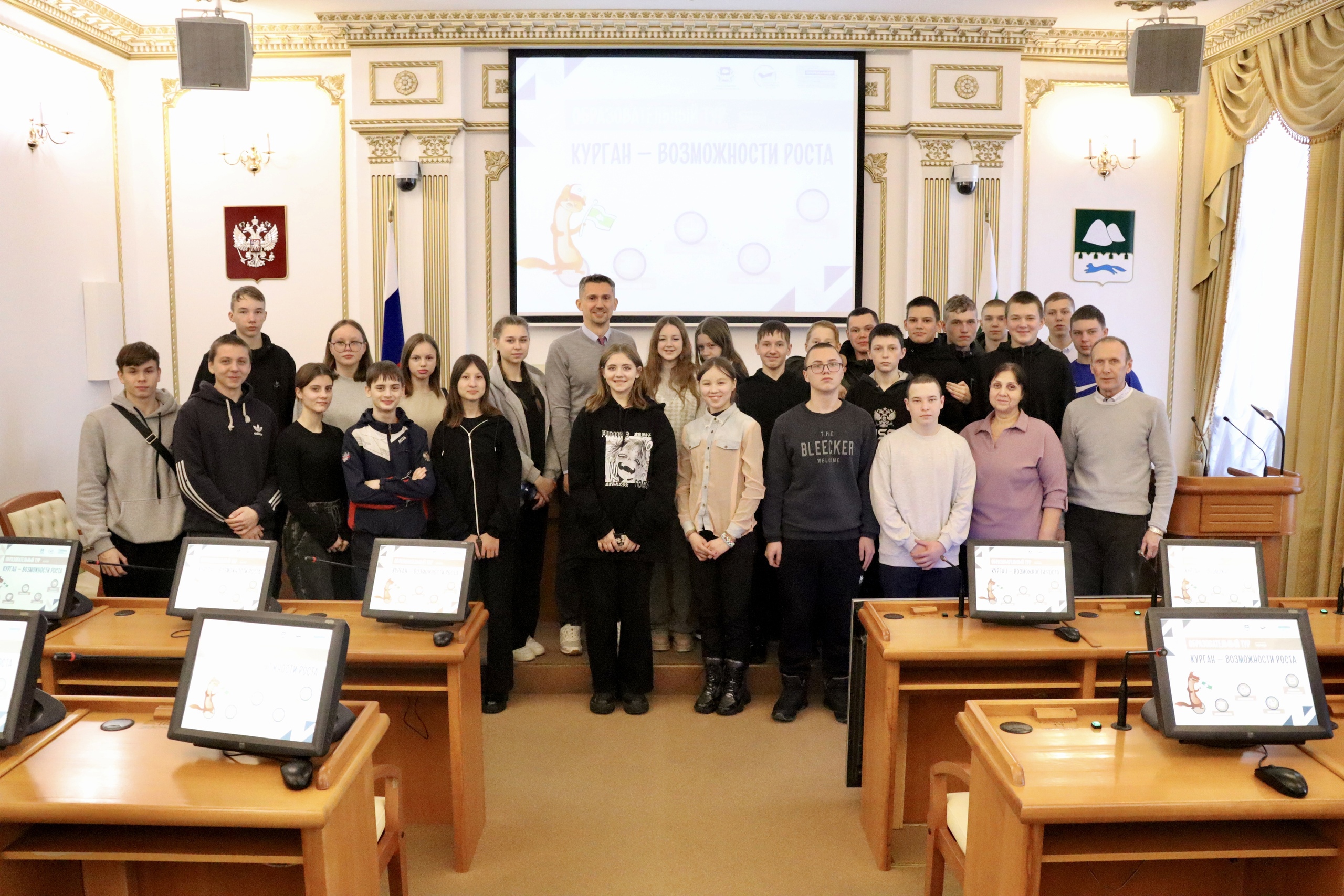 Из техникума ребята отправились в Правительство региона, где с ними встретился Первый заместитель губернатора курганской области Алексеев Алексей. Он рассказал мальчишкам и девчонкам о том, как важно учиться и быть образованным, о перспективах развития и возможностях роста в родном Зауралье, ответил на все вопросы.